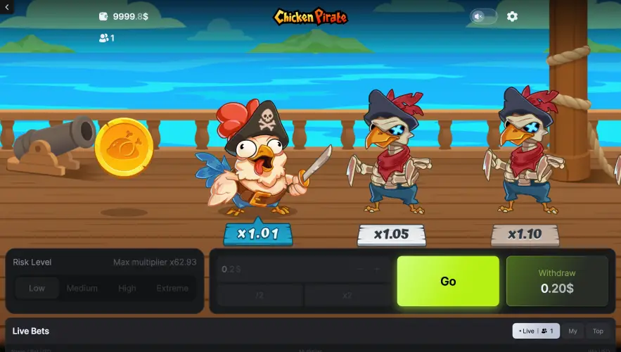 The game structure encourages repeated play, as each round offers a new chance to test strategies and improve timing. This makes Chicken Pirate appealing to both casual players and those seeking a more strategic experience.