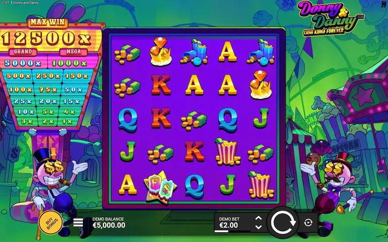 Donny and Danny features a cartoon-style theme with two main characters that give the game its name. The slot offers a balanced approach to gaming with medium volatility, making it suitable for both casual players and those seeking more substantial wins. The game’s RTP (Return to Player) percentage stands at 96.2%, which is competitive within the industry standards for online slots.
