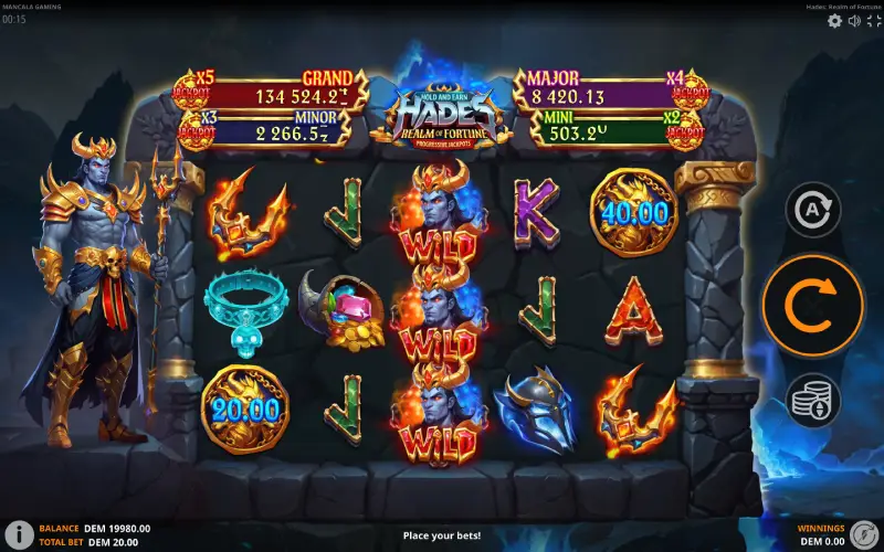 Hades: Realm of Fortune follows a classic slot structure enhanced with modern gameplay elements that introduce additional excitement and strategic anticipation. The game typically operates on a multi-reel layout that supports numerous paylines, offering frequent opportunities for winning combinations. The interface is designed to ensure smooth navigation, allowing players to adjust their bets easily and launch spins without unnecessary complexity. Mancala Gaming focuses on user-friendly design, and this slot demonstrates the developer’s commitment to clear functionality combined with visually striking presentation.