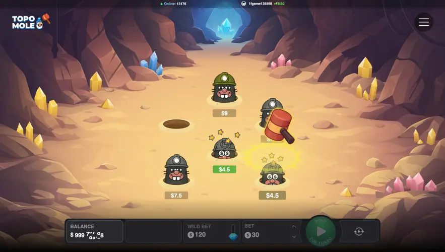 The gameplay structure of Topo Mole is intentionally simple, allowing players to focus on the excitement of each reveal rather than complicated rules. Every round begins with the player selecting a bet size. Once the wager is confirmed, the game field activates and the results are determined immediately.
