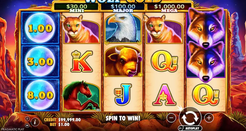Wolf Gold is a popular online slot developed by Pragmatic Play, known for its stunning visuals, immersive theme, and rewarding gameplay. Set against the backdrop of the American Southwest, this slot invites players to explore canyons, mesas, and moonlit nights in search of big wins. With its 5-reel, 3-row layout and 25 fixed paylines, Wolf Gold offers a balanced mix of simplicity and excitement that appeals to both casual players and seasoned slot enthusiasts.